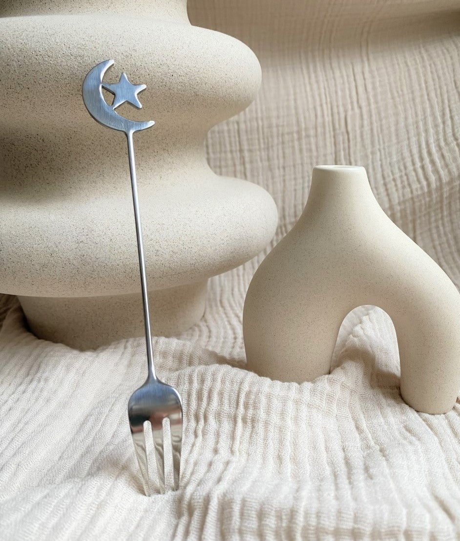 Lot de 6 fourchettes à dessert avec lune et petite étoile.
